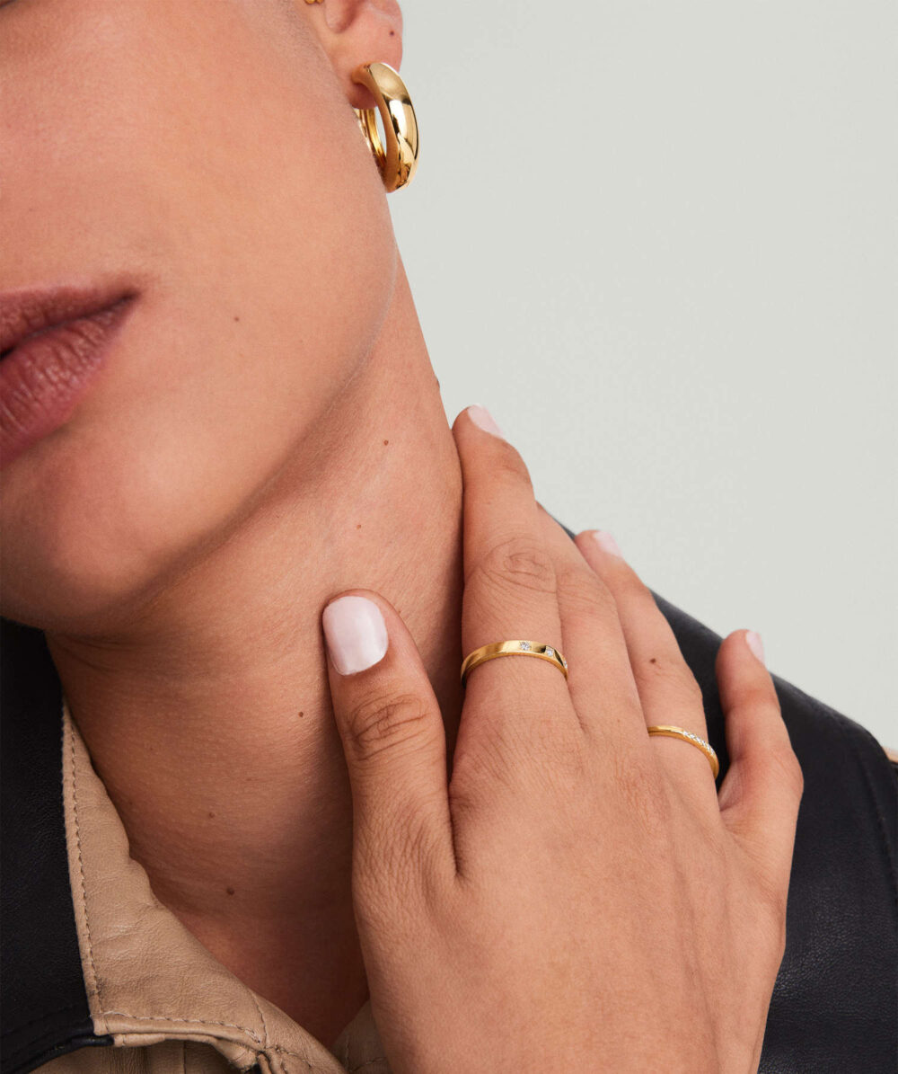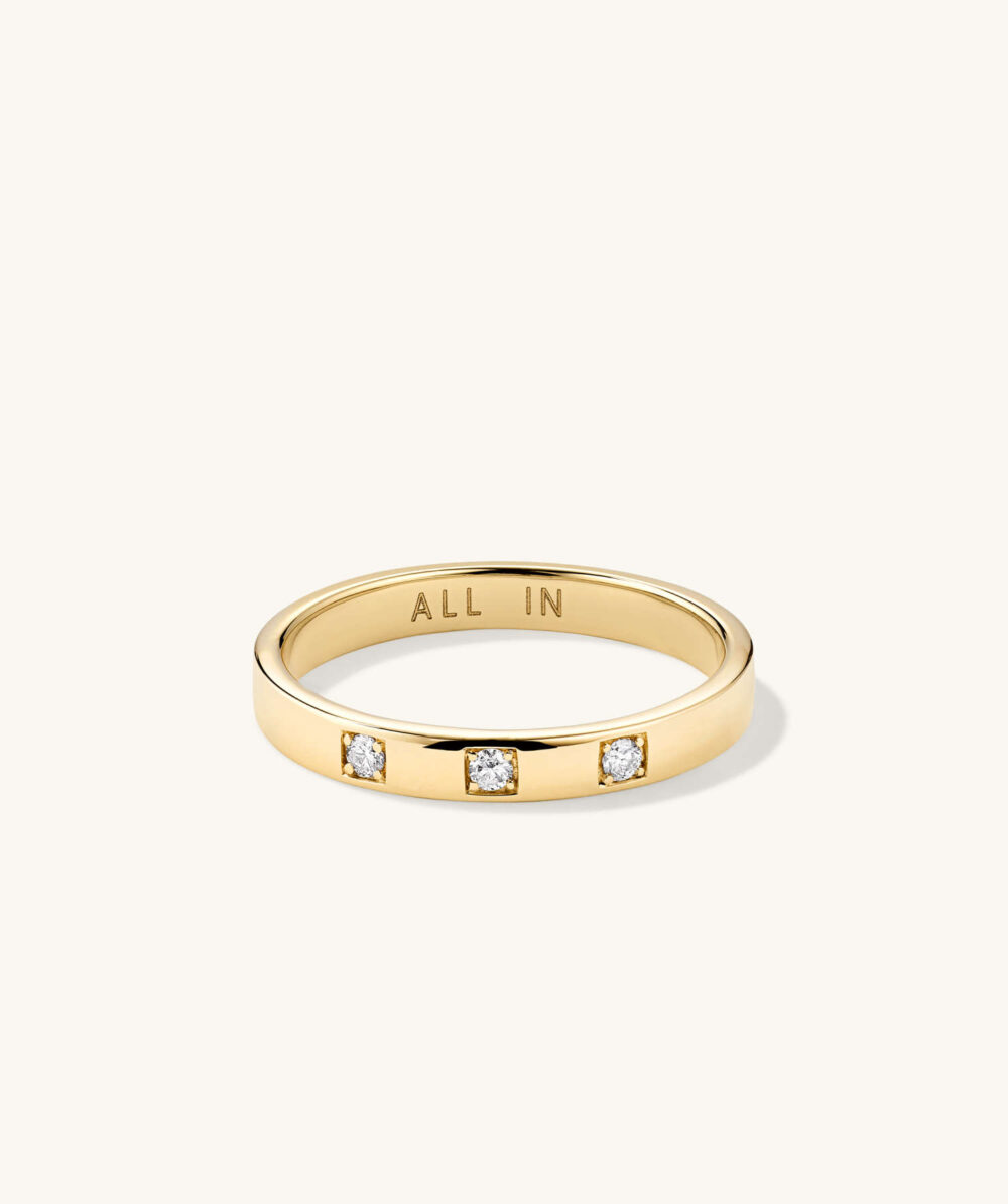 Qızıl vermeilin zənginliyini və üç parlaq brilyantın cazibəsini bir araya gətirən bu üzük, zəriflik və dəbdəbənin əvəzolunmaz simvoludur.